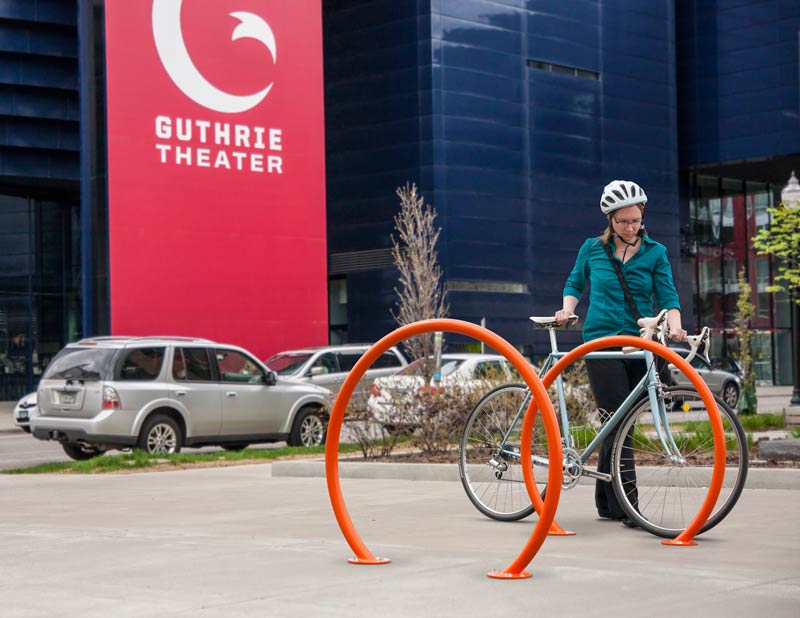 Clean lines and simple functionality make the Round Rack welcome addition to bike parking. Much like a Hoop Rack, but with a more stylish appearance, the Dero Round Rack enhances public spaces while providing secure parking for two bikes.