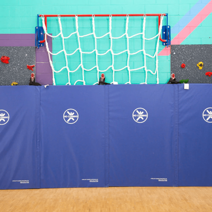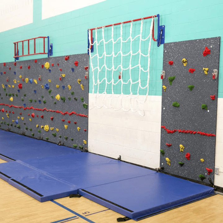 Safari® Wild Web is wall mounted and can be used as a stand alone element or can be combined with other indoor jungle gym equipment to maximize fitness opportunities with minimal space requirements. Mounting brackets and mat-locking system help stow and lock components to prevent unauthorized use. Can be mounted to concrete block or poured concrete walls only. Complete package includes a Mat-Locking® System, mounting brackets, hardware, installation instructions, safety sign and activity guide.