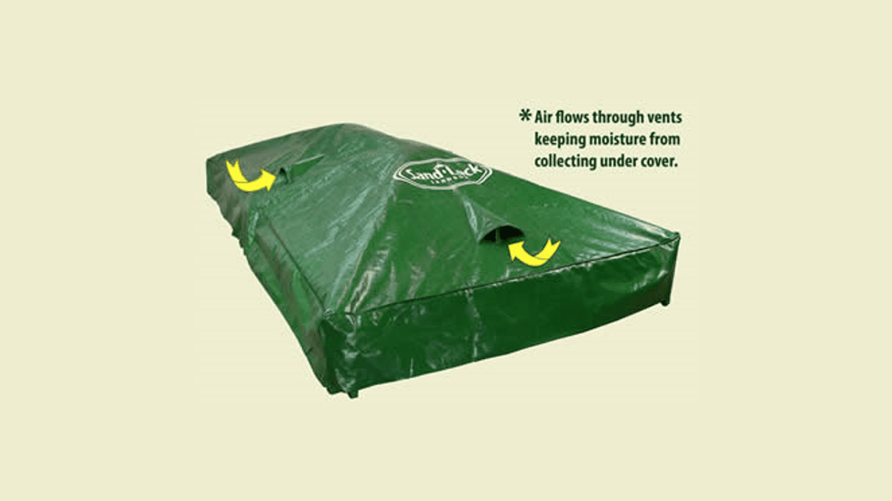 COVERLOCK™: All SandLock Covers include the CoverLock shock cord system. Shock cords are sewn into corners and sides of cover and used by pulling on to notches in sandbox. This design allows covers to go on and off easily while staying on in extreme year round outdoor weather. Our covers really work!