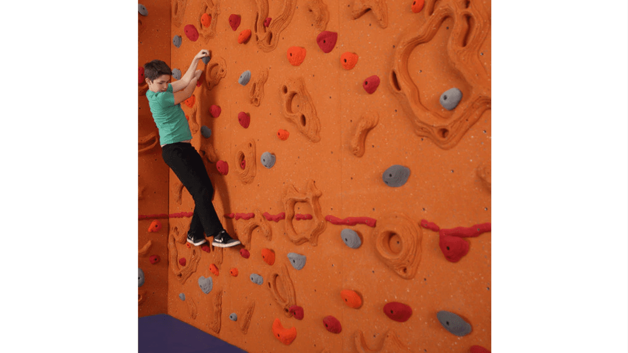 Put climbing skills to the test with the Sandstone Relief-Feature™ Wall. Special sandstone-style hand holds are a great way to start on this wall, but try climbing on the relief features for an extra challenge. The Groperz® Hand Holds offer a variety of options for climbers to use as they travel across the Traverse Wall. Our signature Red-Relief Line® is a safety feature that reminds climbers to stay within a distance of three feet from the floor and is a helpful tool for the climbing wall supervisor. The Sandstone Relief-Feature™ Traverse Wall® is visually interesting and provides extra rock-climbing challenges.
