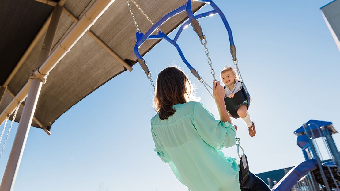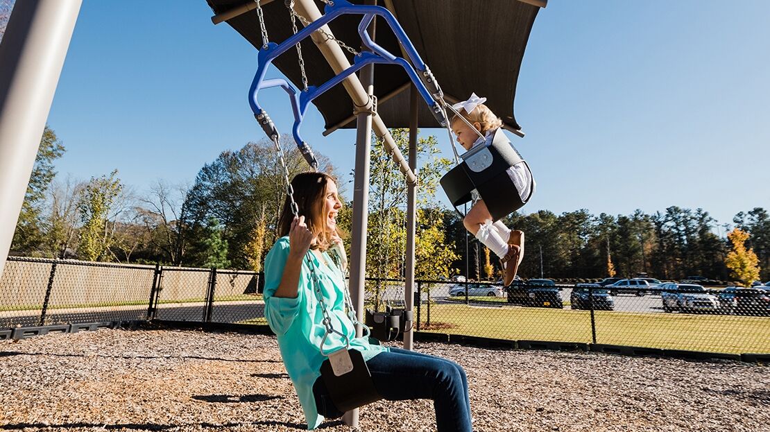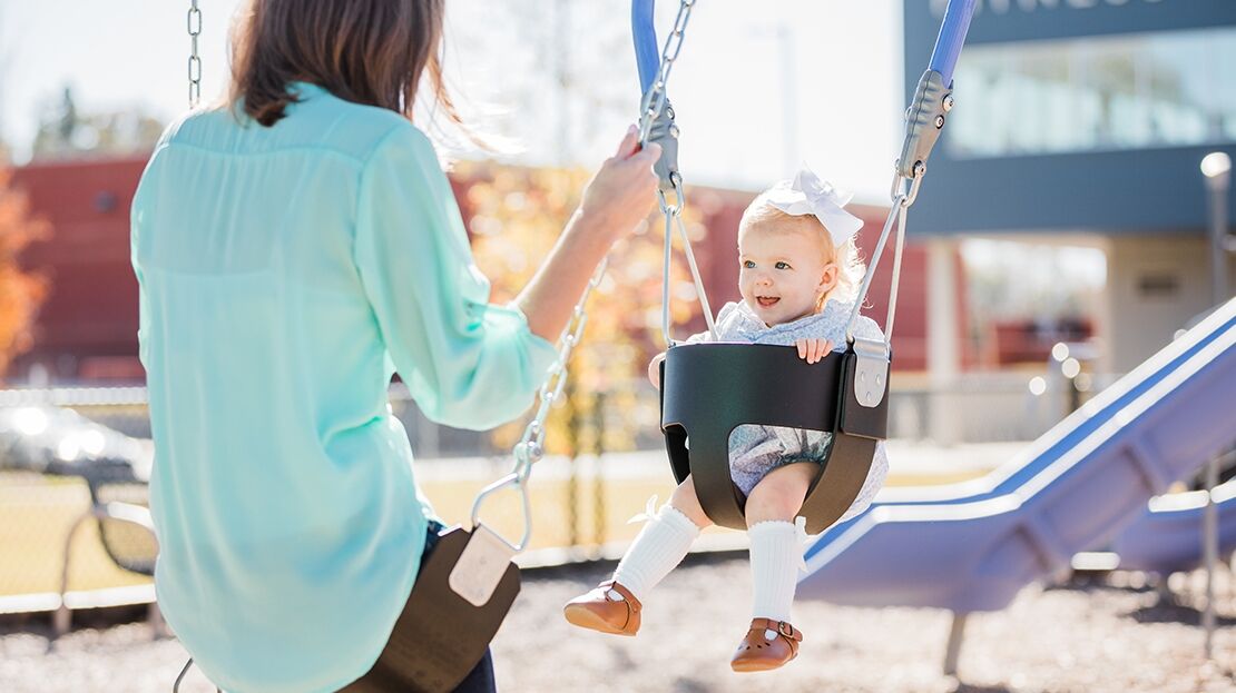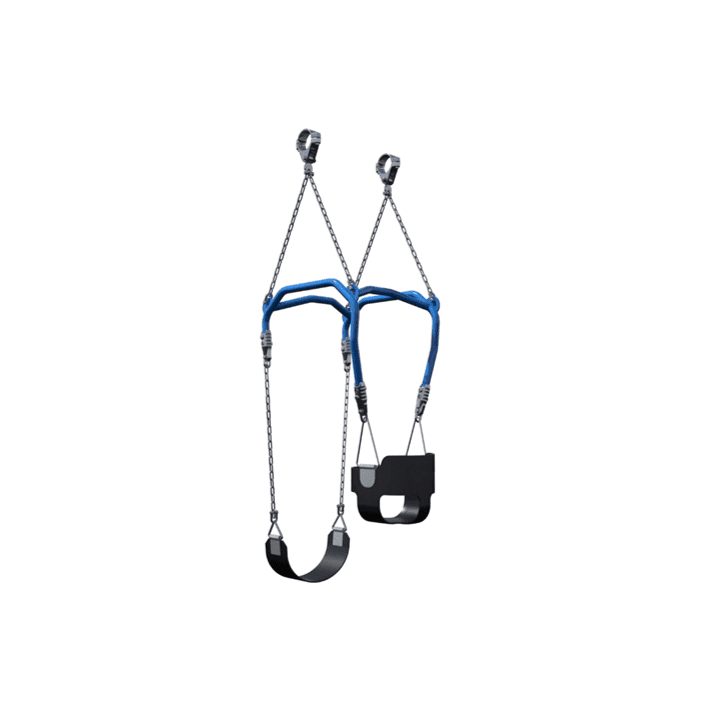 Equipped with a belt seat and a bucket seat, the See Me Swing is designed to allow adults and children to swing while face to face. Research shows that emotional bonding occurs when a parent and their child make eye contact during play. This facing each other swing encourages social, emotional, and cognitive development of both children and adults.