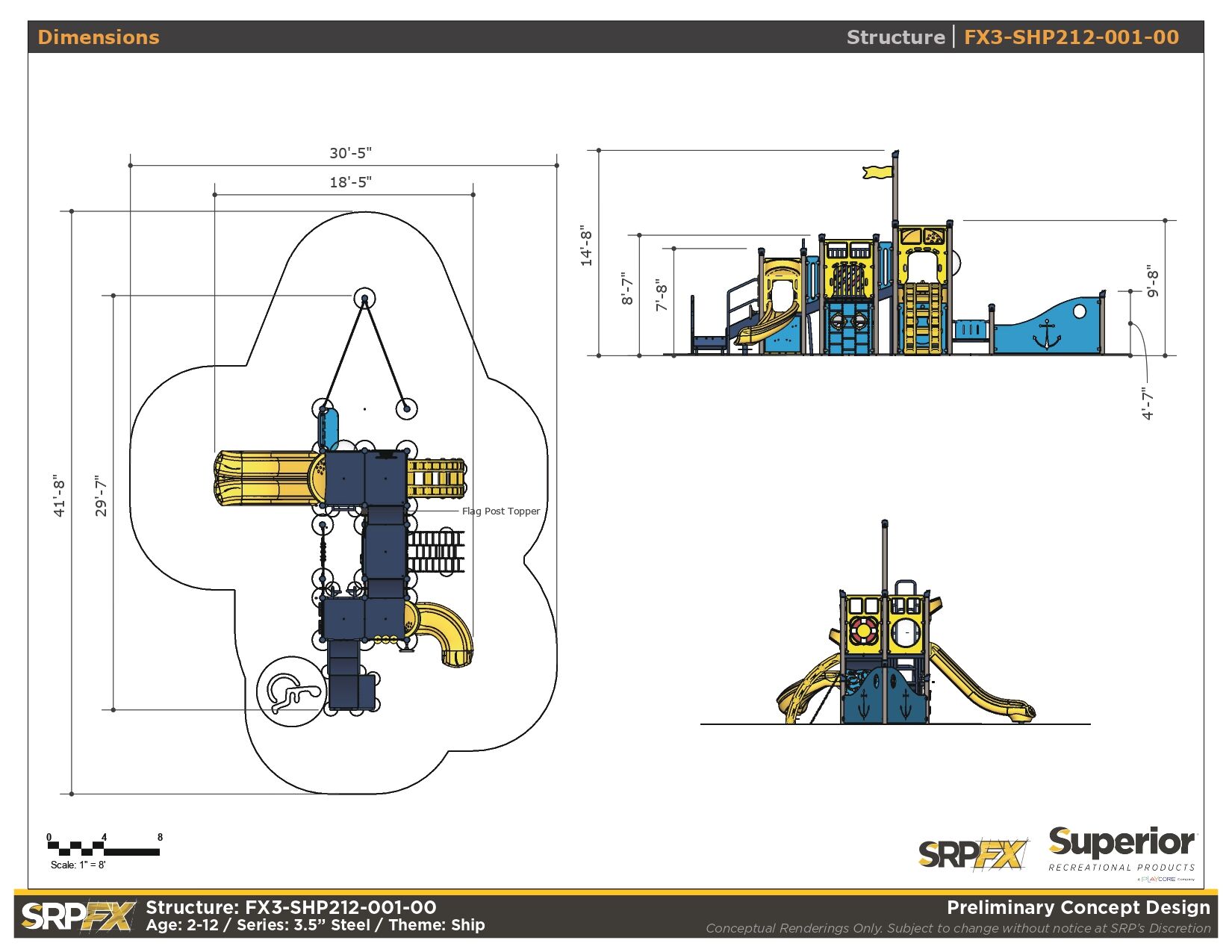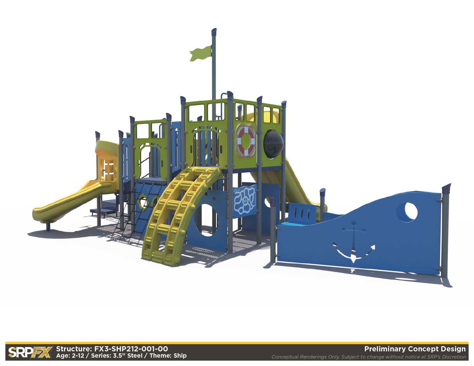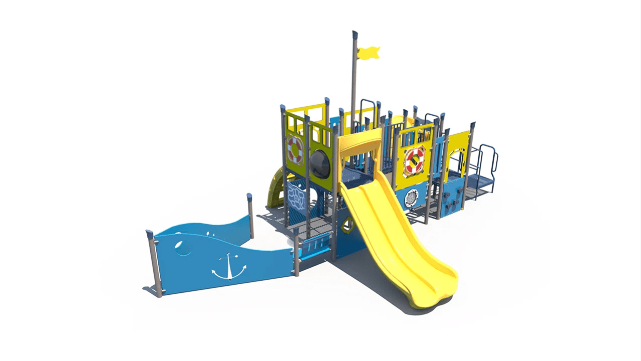 The FX3-SHP212-001 ship themed playground will add an iconic feature to your play space. This 3.5-inch post themed play structure adds great play value with its many slides, climbers, and panels. It’s designed for children ages 2-12.