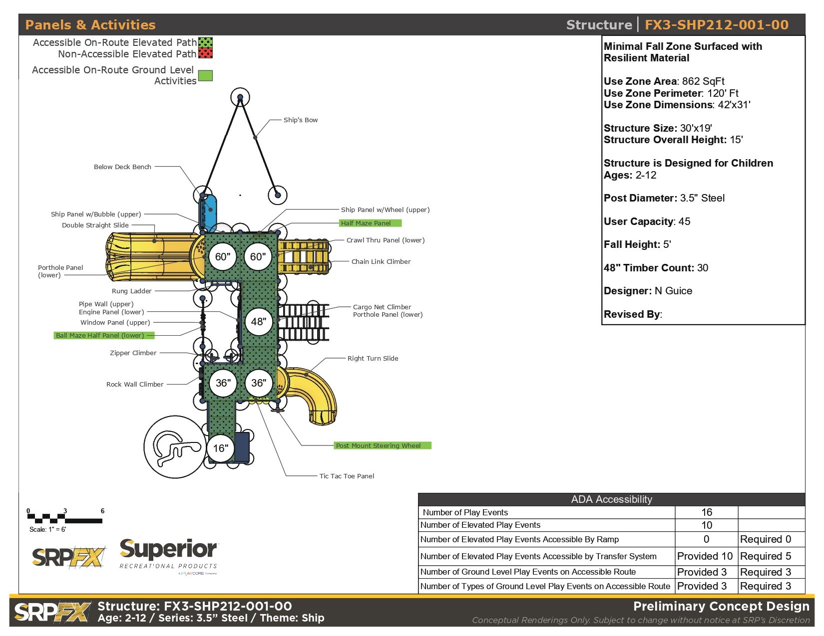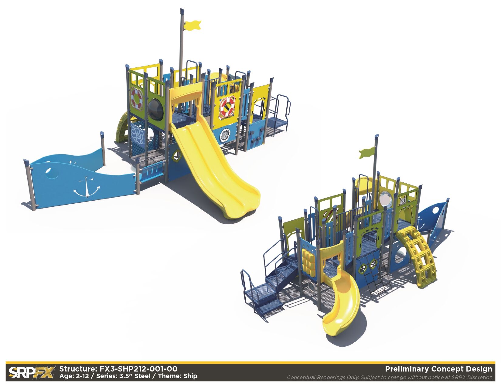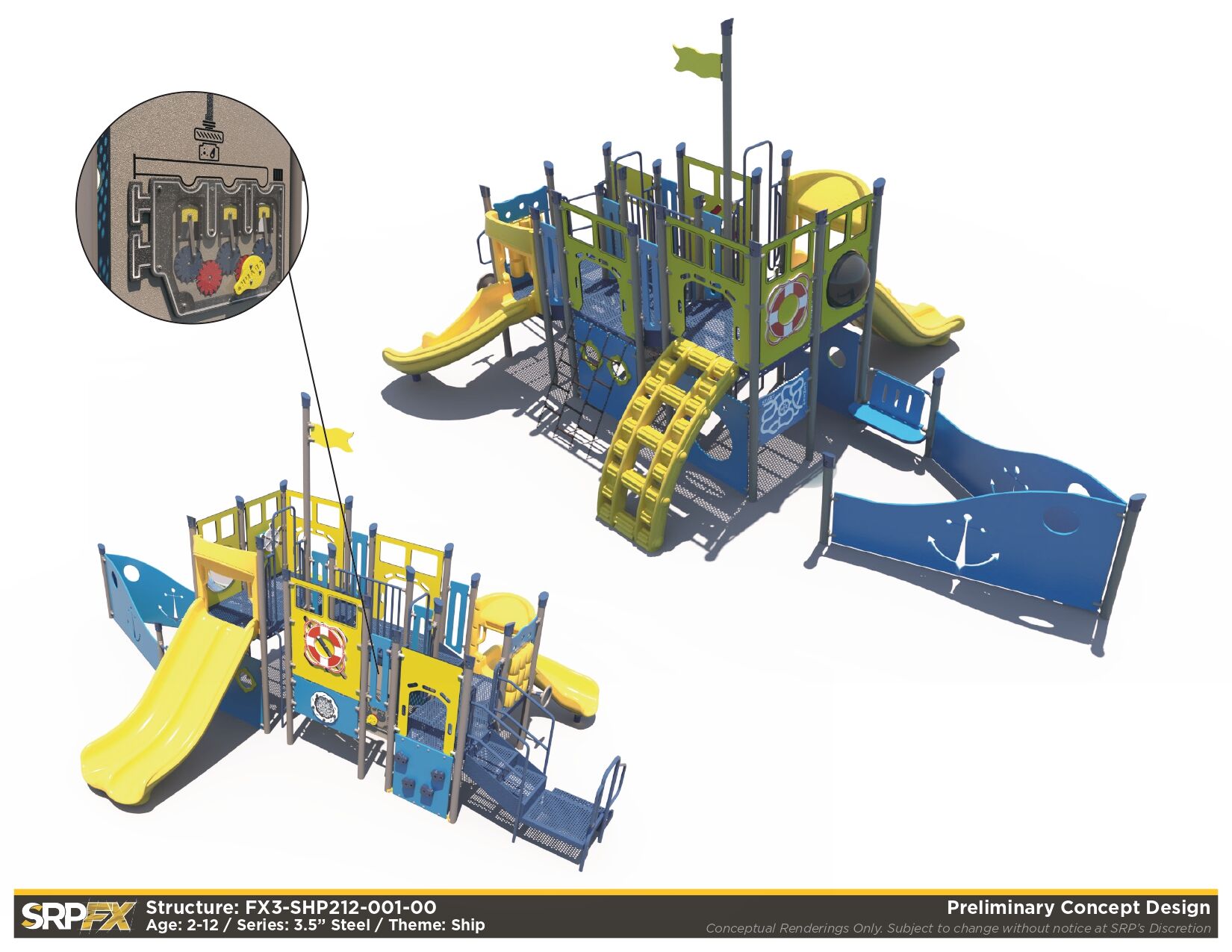 The FX3-SHP212-001 ship themed playground will add an iconic feature to your play space. This 3.5-inch post themed play structure adds great play value with its many slides, climbers, and panels. It’s designed for children ages 2-12.