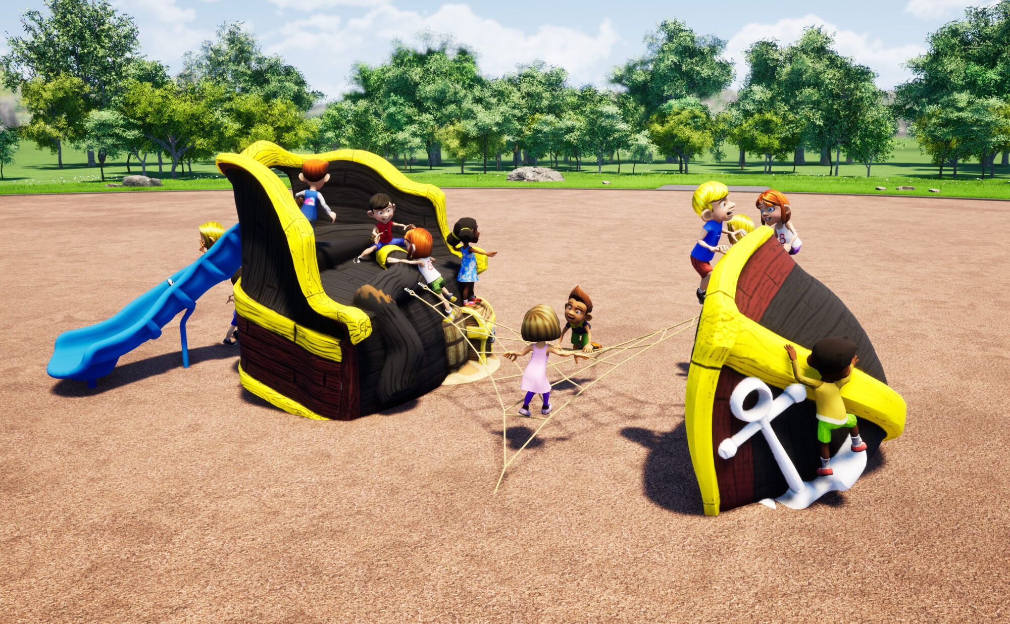 A fun pirate ship themed climber with varying degrees of climbing difficulties. Constructed of durable Glass Fiber Reinforced Concrete (GFRC). The unique design allows for 360 degrees of climbing, integrated handholds, realistic texture.