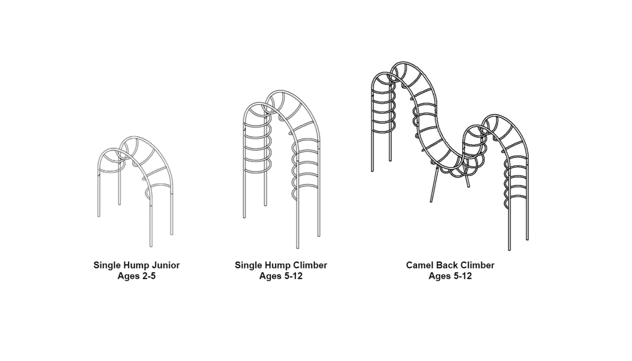 Don’t let the simple shape of the Single Hump Camel Climber fool you, it will keep kids playing for hours. Kids can climb up and down the ladder using the looped rungs and handrail for support.