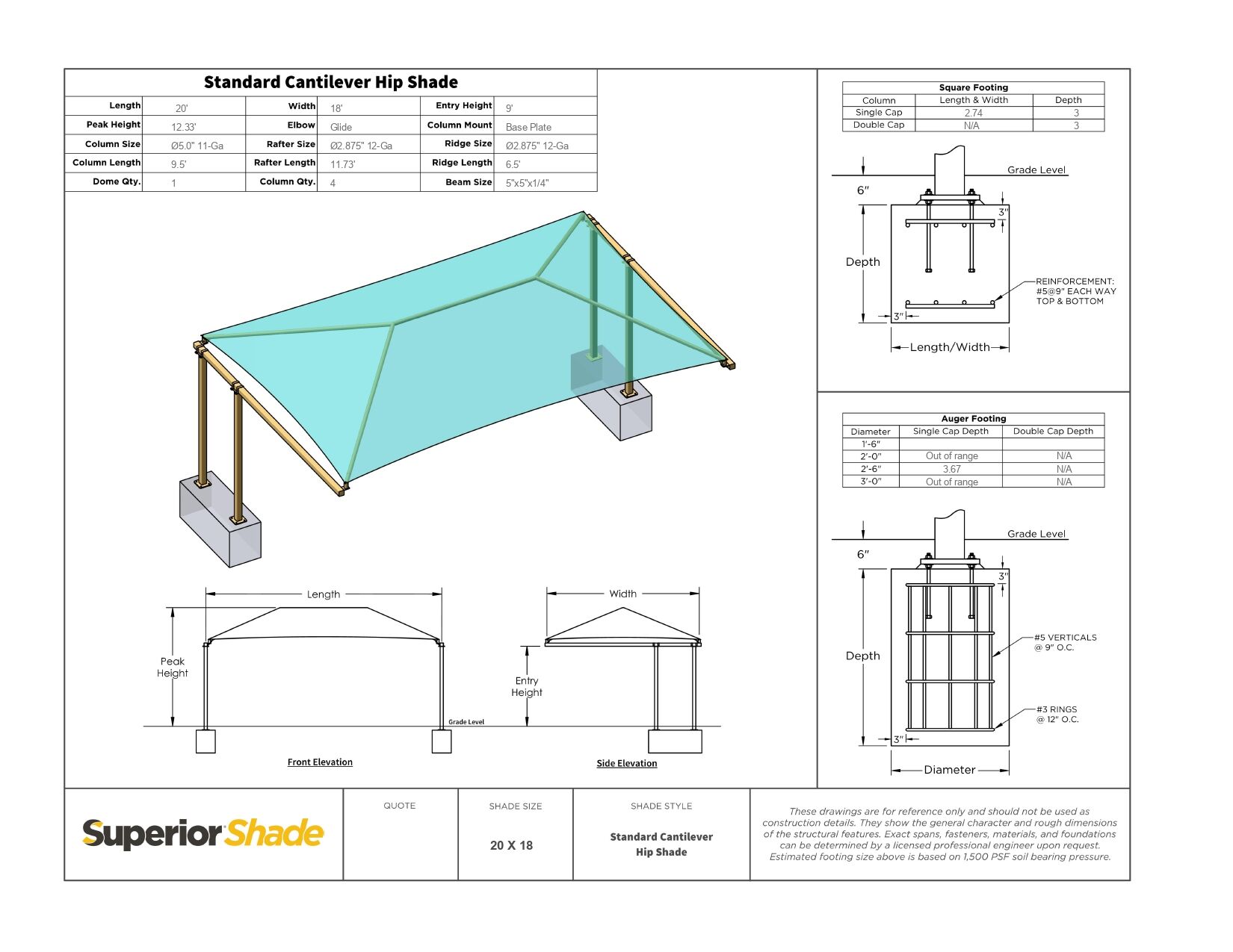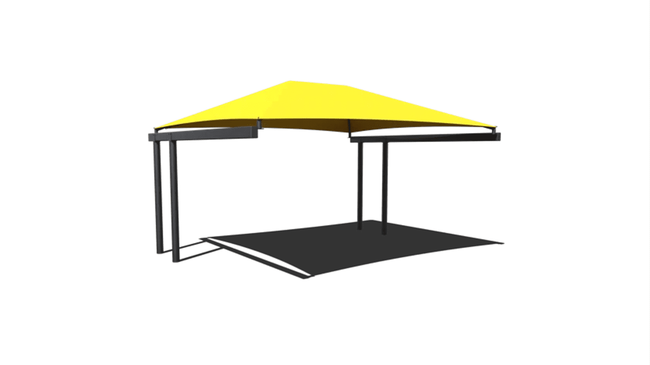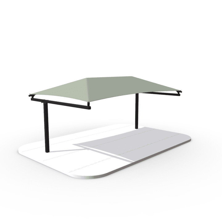 The Standard Cantilever is a great solution for shading walkways, bleachers, and bus stop seating. Because the columns are on one side of the shade, the Standard Cantilever Car Parking Shade is also a good option for shading vehicles. What’s more, this style is one of the most economical ways of shading cars and parking lots. With this shade being so versatile, you can’t go wrong selecting it for your shade needs. Some common sizes of this cantilever car parking shed include 18’x20′, 18’x27′, and 18’x36′.