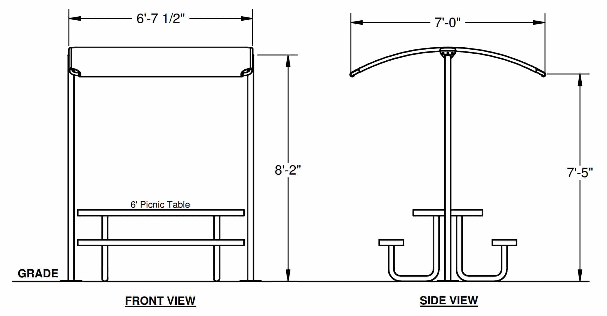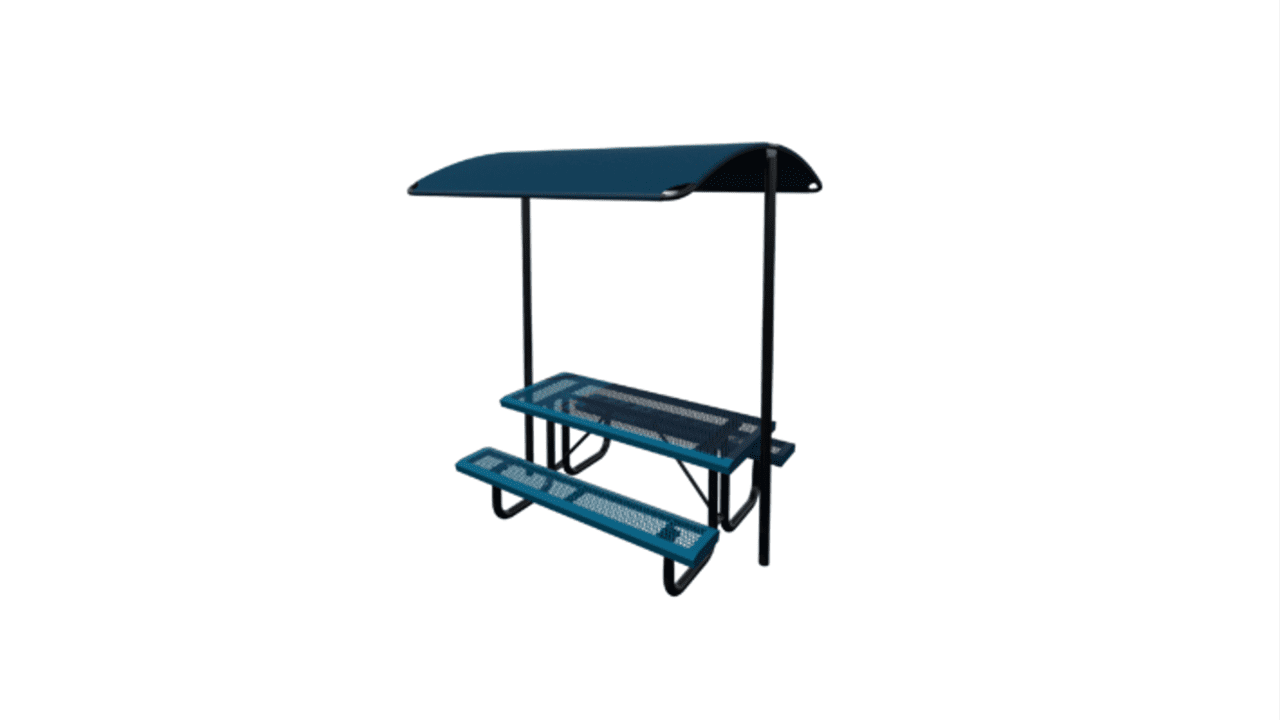 The freestanding Table Shade is designed for our 6′ or 8′ table designs. Freestanding picnic table shades are popular for use in outdoor spaces such as parks, campgrounds, and other public areas where they can be used to create a shaded area for outdoor dining and entertaining. They are also ideal for use in locations where it is not possible or practical to install a larger permanent shade structure. This table shade features a durable powder coated frame that holds up commercial-grade fabric in your choice of color. You can choose from surface (SM) or in-ground (IG) mounting. 6′ Table: STS765IG or STS765SM 8′ Table: STS785IG or STS785SM