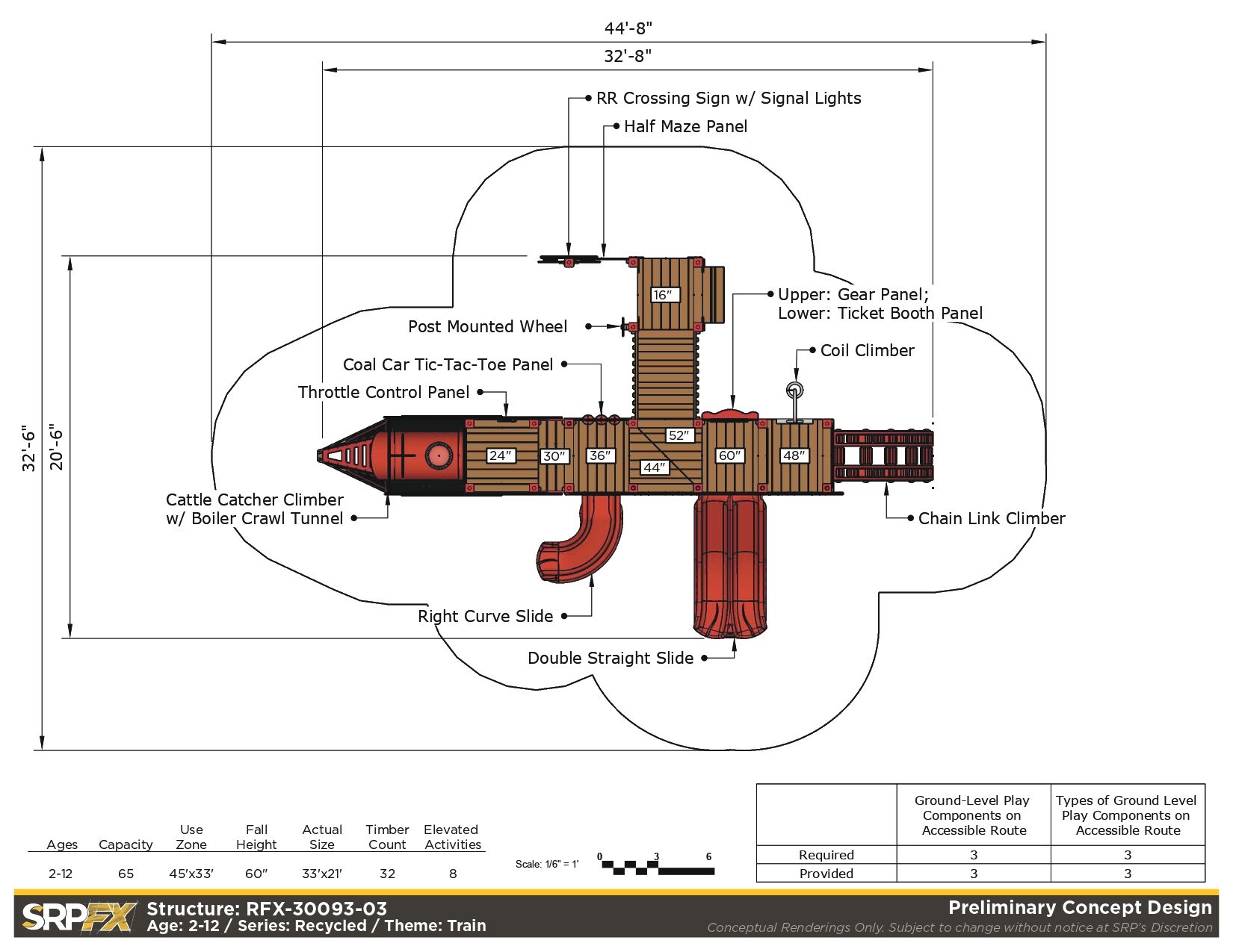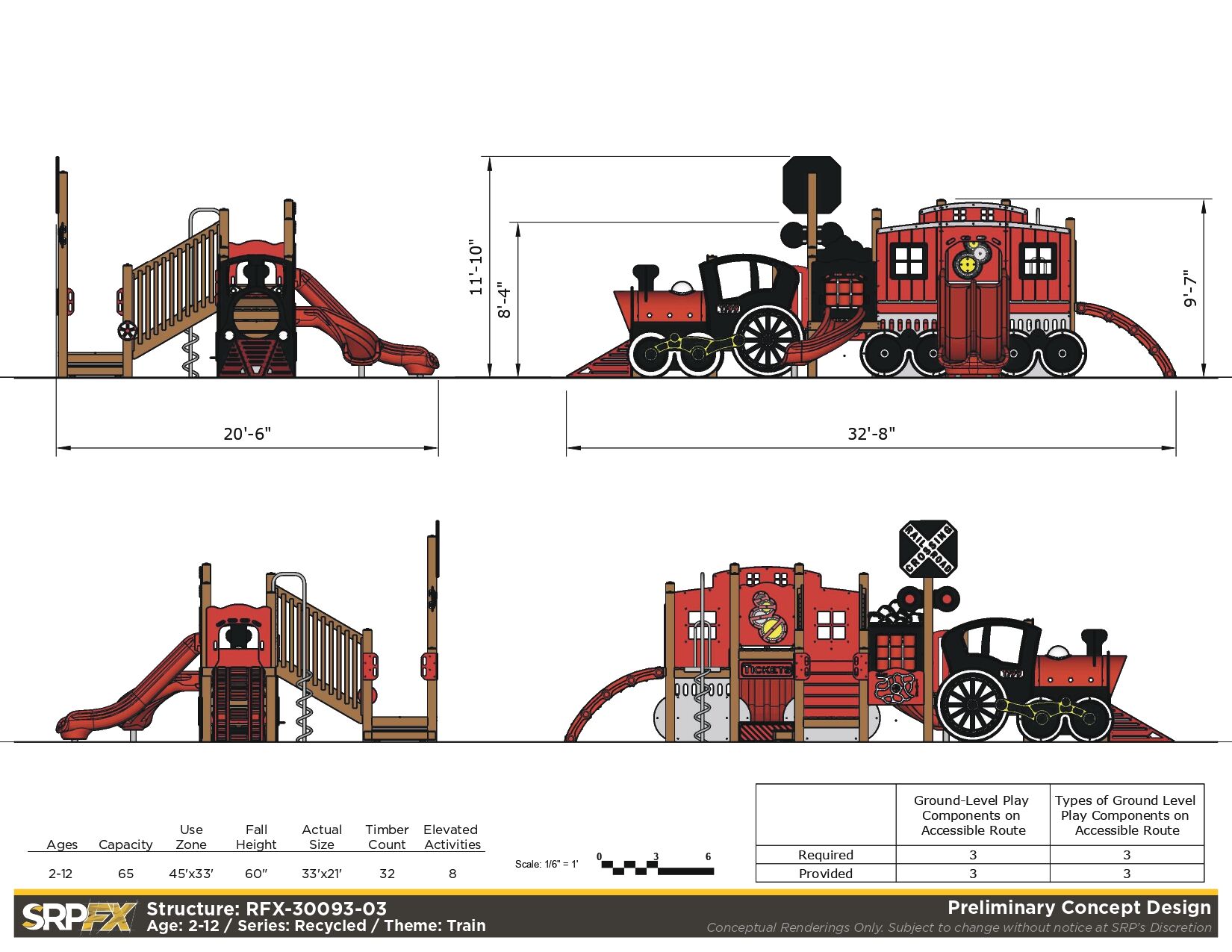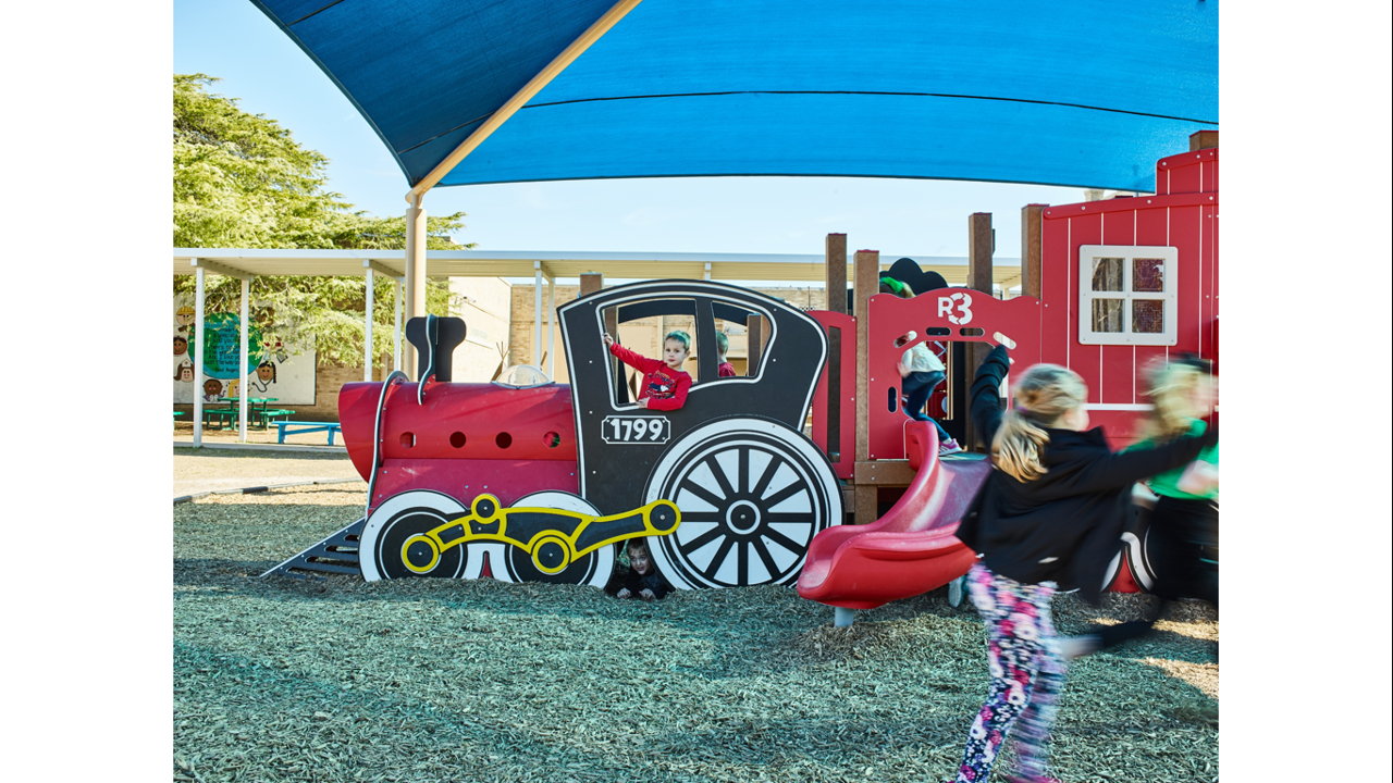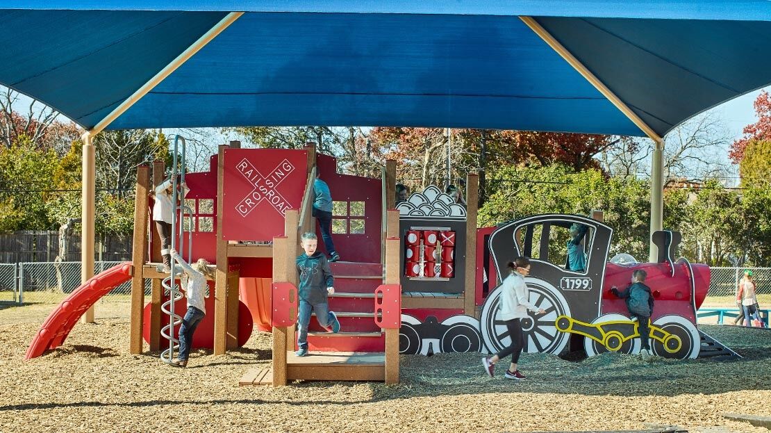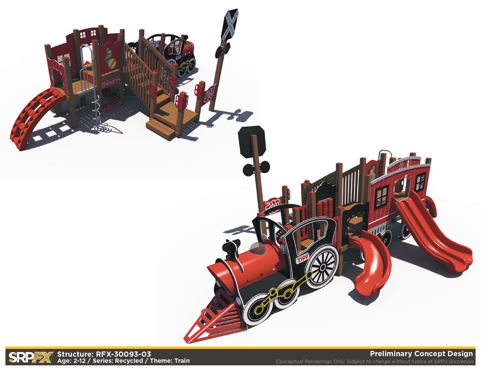 All aboard the Train Themed Playground! Our R3-20160 is the larger sister structure to our R3FX-30002 Steam Engine. This structure is the perfect addition to any train-themed playground and, unlike our Steam Engine, features a caboose! This highly detailed recycled structure, designed for children aged 5-12, is sure to impress and encourages children in the areas of physical and dramatic play.