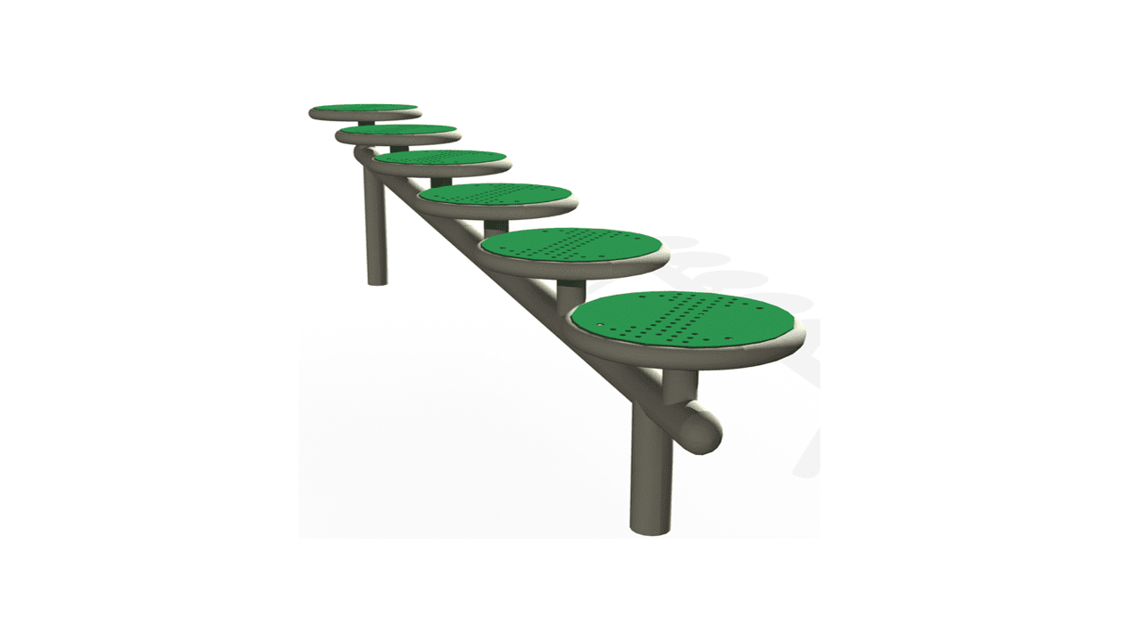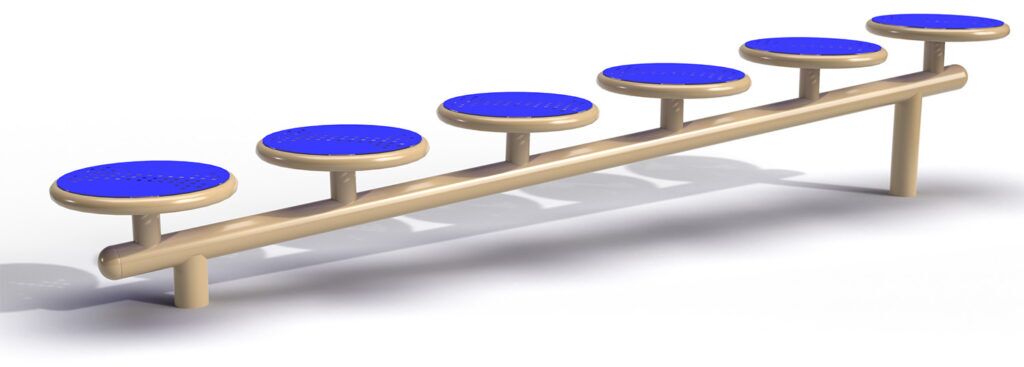 The Stepping Riser presents a different challenge for dogs. This fixture has a gentle slope, adding height to each of the six stepping pods and allowing dogs to develop their balance and confidence with each use. The unified construction greatly simplifies installation. You can even add a second, third, or fourth riser to create endless possible arrangements.