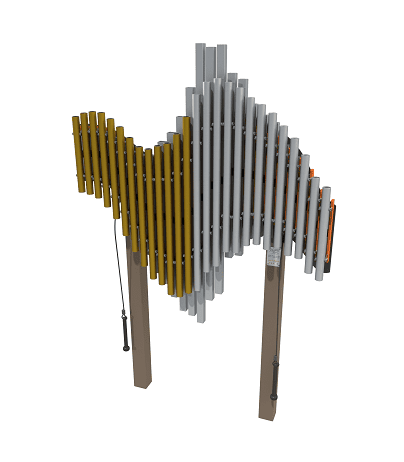 The stunning sculptural presence of this design exudes both beautiful sounds and visual art. Tones are pure, soothing and never go out of tune. Ideal for music therapy and community music projects. The chimes are made of durable, resonated anodized aluminum and range from soprano to alto. The swirl’s warm vibrant tone comes from individual resonators made of Anodized Aluminum. The color is Orange.