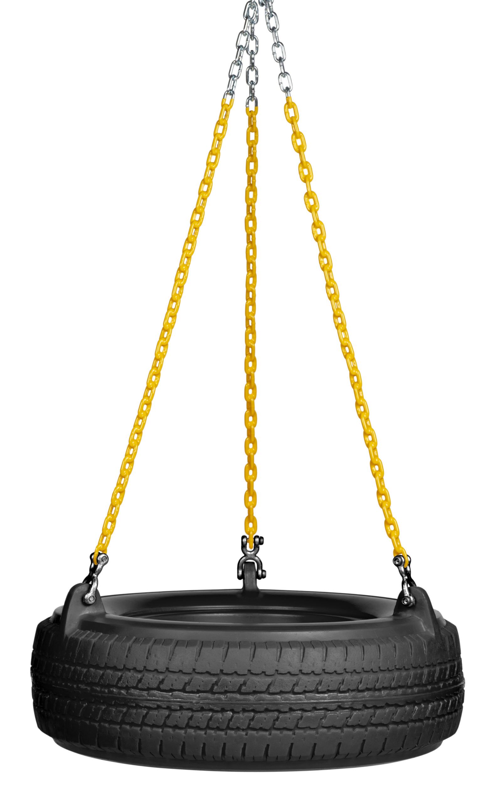 Our Tire Swing Seat is loads of fun! One tire seat per bay. It’s recommended that you use our 5″ Tire Swing Frame. The tire is made from durable, black roto-molded plastic. Each swing seat includes one tire and all the chain and hardware necessary to hang the tire swing. Available with your choice of PVC coated or galvanized chain.