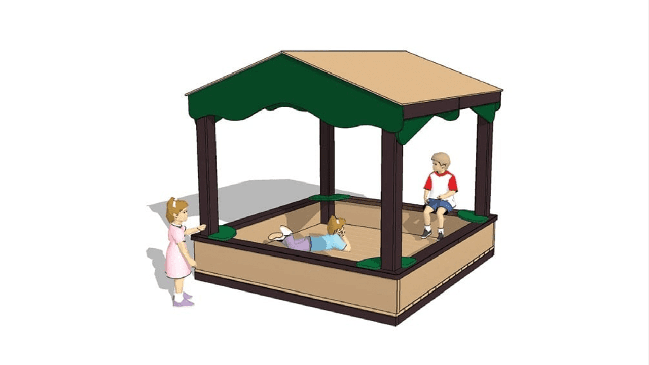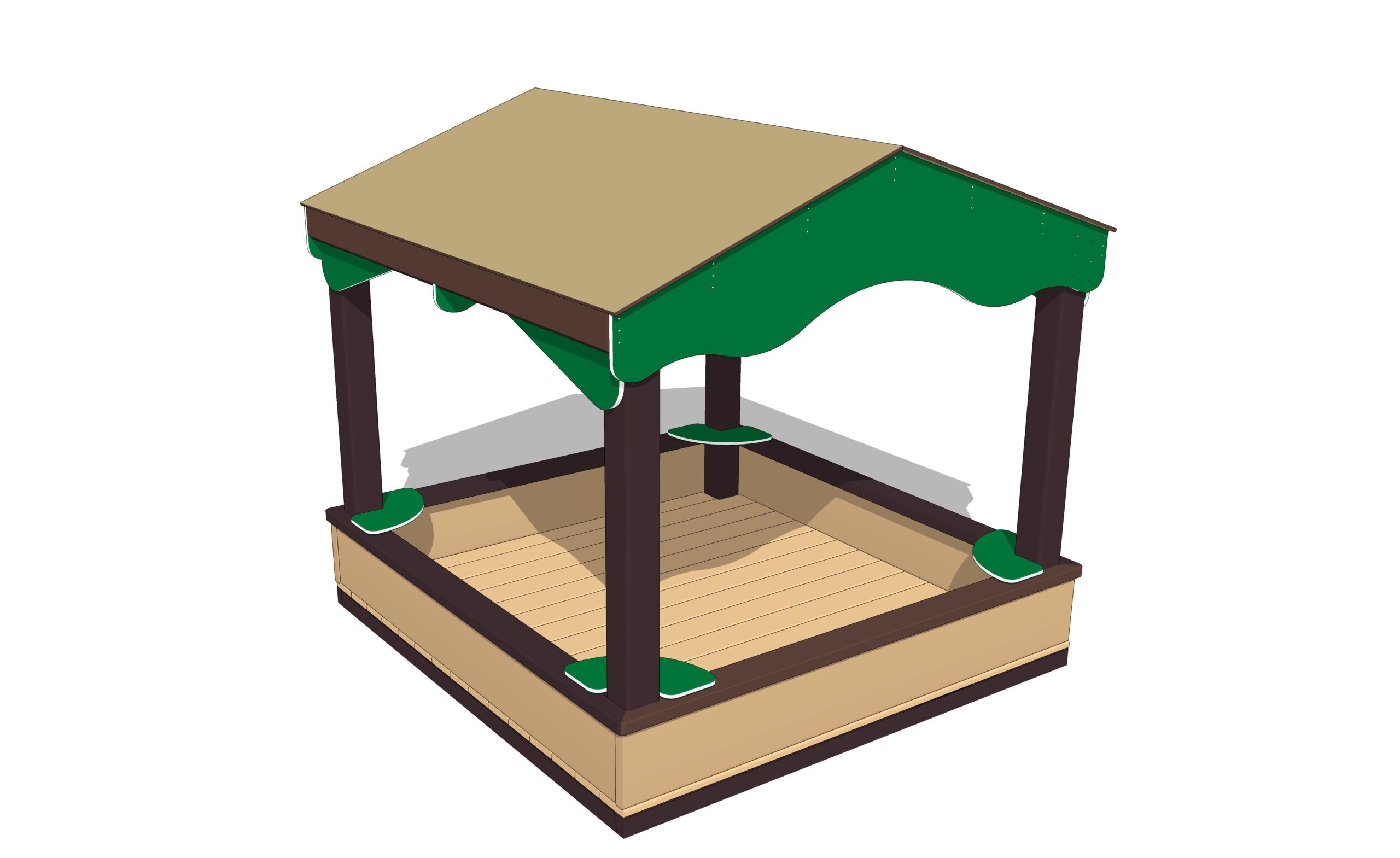 The Tot House for the playground, outdoor classroom, or daycare play area has a solid deck with low walls that double as seating for children. At the corners, there are rounded accent seats.