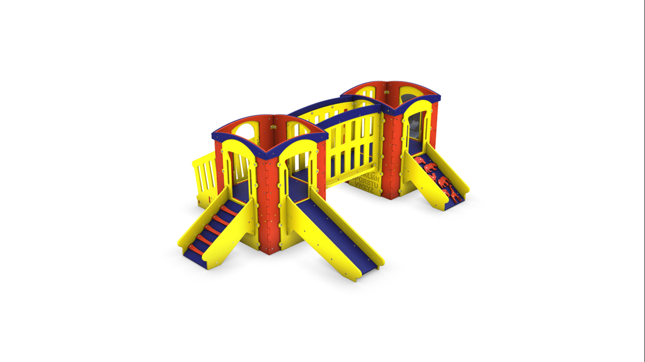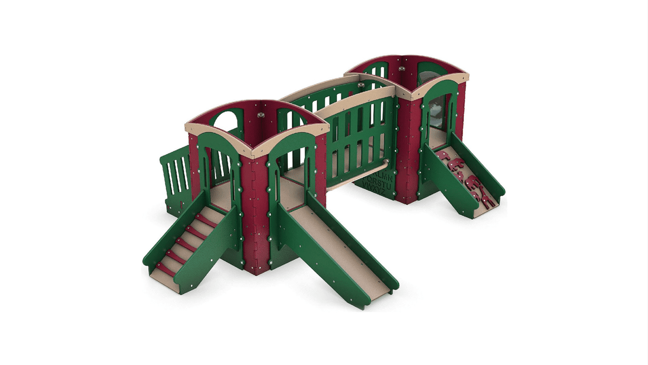 Start with a base unit and add on different play components based on the size of your area and your budget. While you can design your own, check out three sample tot-lots: Phase I, Phase II, and Phase III. Our Tot-Trek is available in a primary or natural color scheme. Phase I can accommodate up to five children and measures 8 ft. x 6 ft. The base model features stairs, slide, bubble window, texture panel, and climber. Phase II can accommodate up to 10 children and measures 12 ft. x 8 ft.. This model includes all of Phase I plus bridge, climber, stairs, and activity panels. Phase III can accommodate up to 15 children. It includes all of Phase II plus crawl tube, slide, and activity panels.