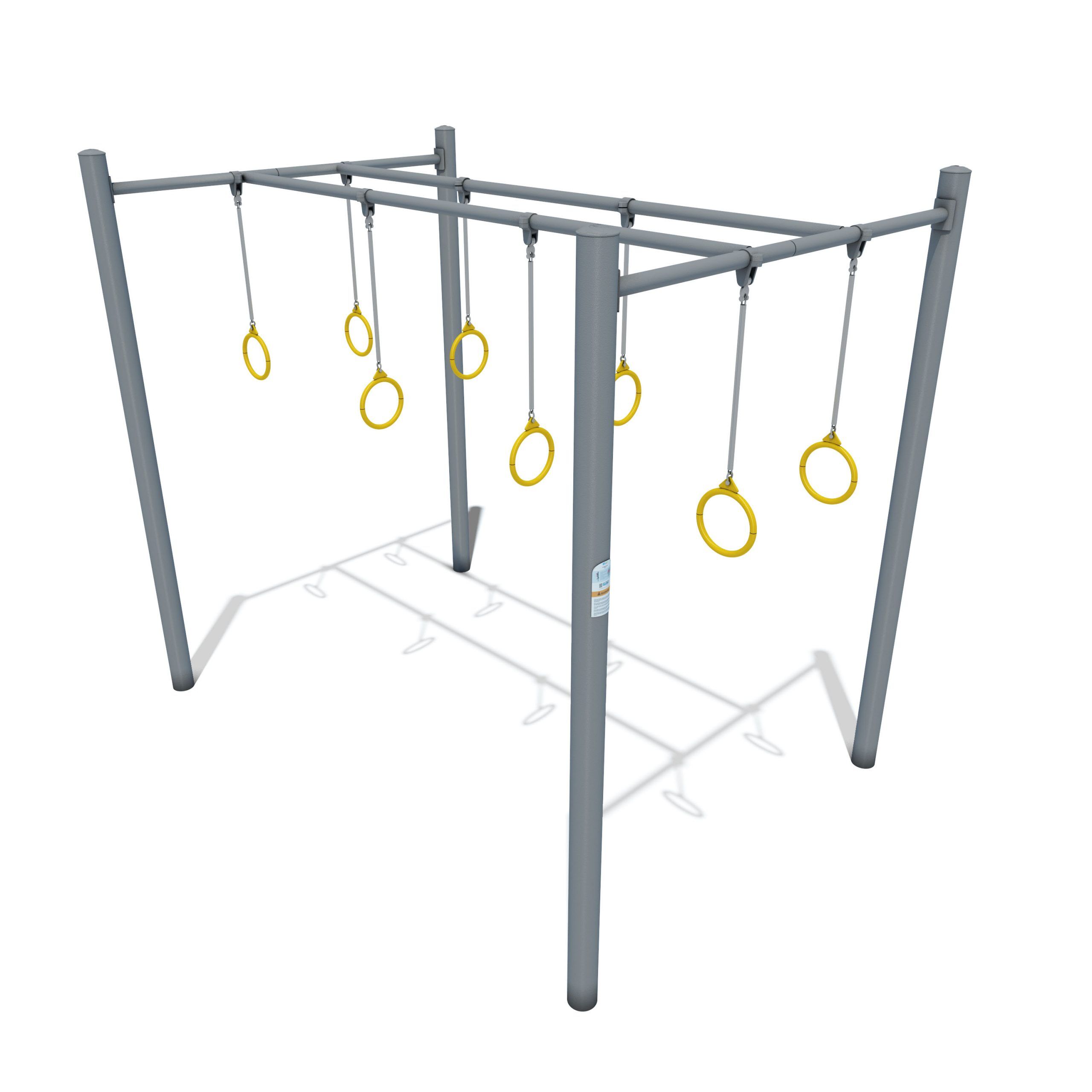 The Trapeze Rack provides multiple challenging and exciting muscle fitness activities that also enhances core fitness and flexibility. The trapeze rings with various heights provide a wide range of exercises in a single station.