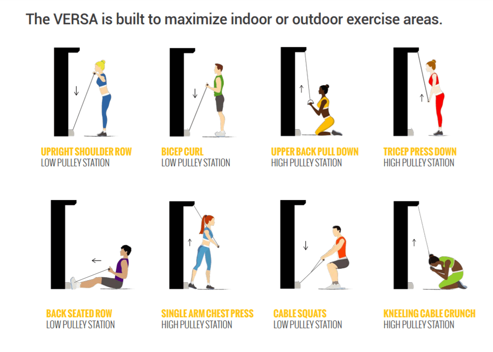 The VERSA provides a full body workout by allowing the user to easily change the angle and level of resistance in over 8 exercises. This makes many different exercises easy to set up and perform for a variety of user abilities, including for those using a wheelchair.