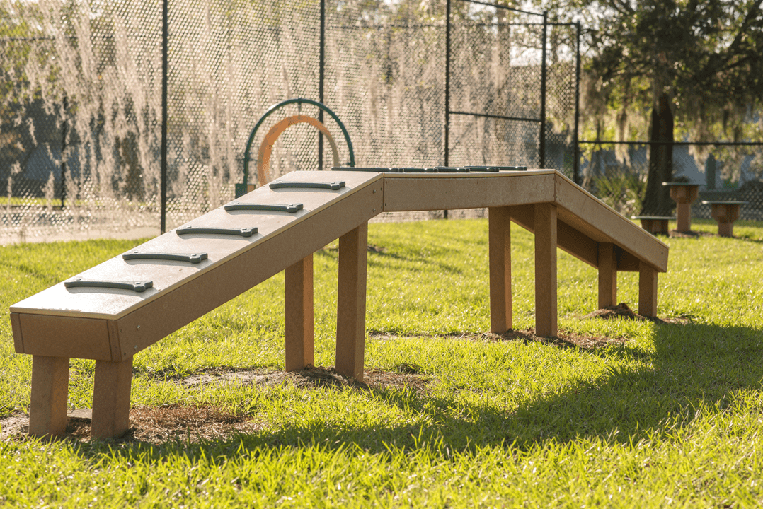 Similar to the Camel Hump Climber, Walk the Plank makes a great addition to any dog park. Dogs will have fun as they walk up and down each side or take in the views from the top platform.