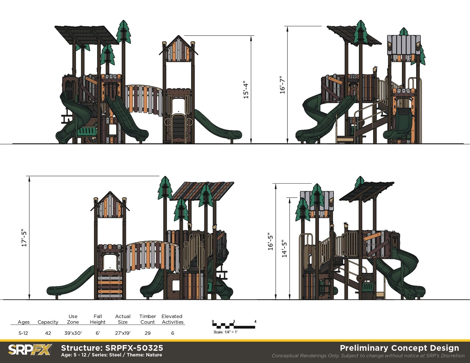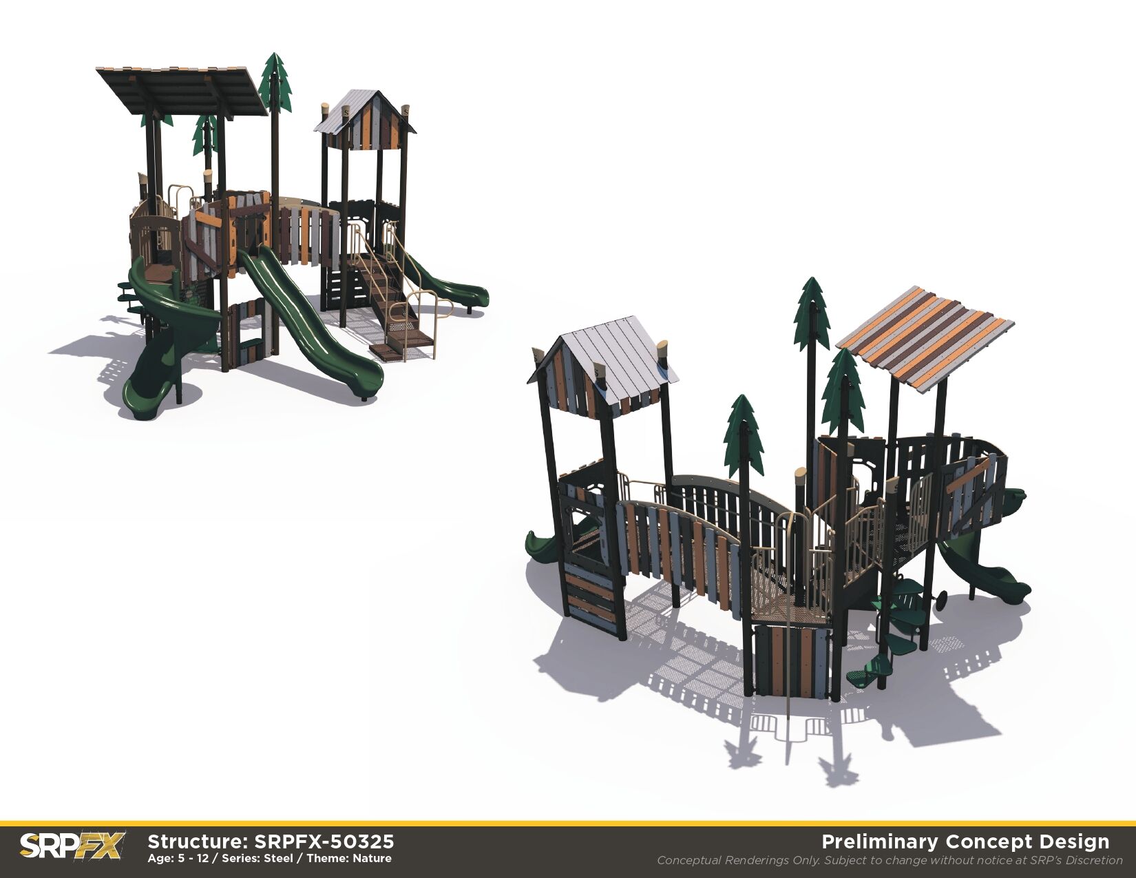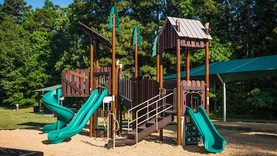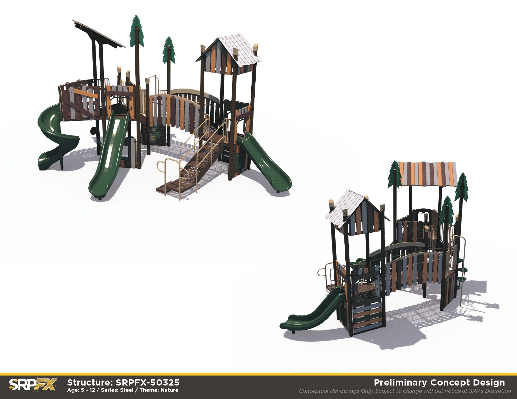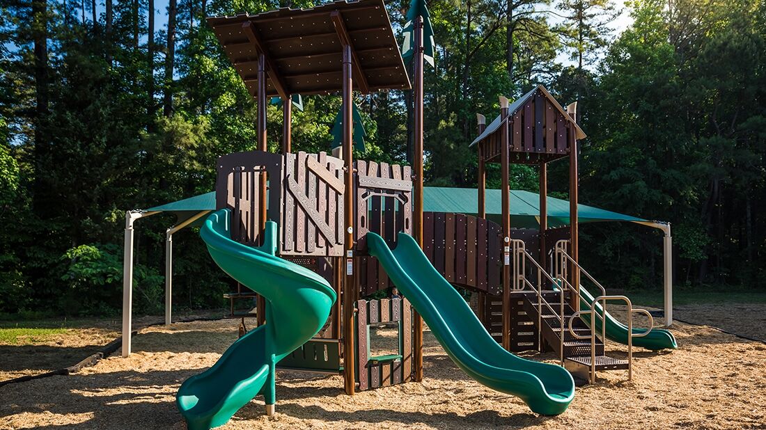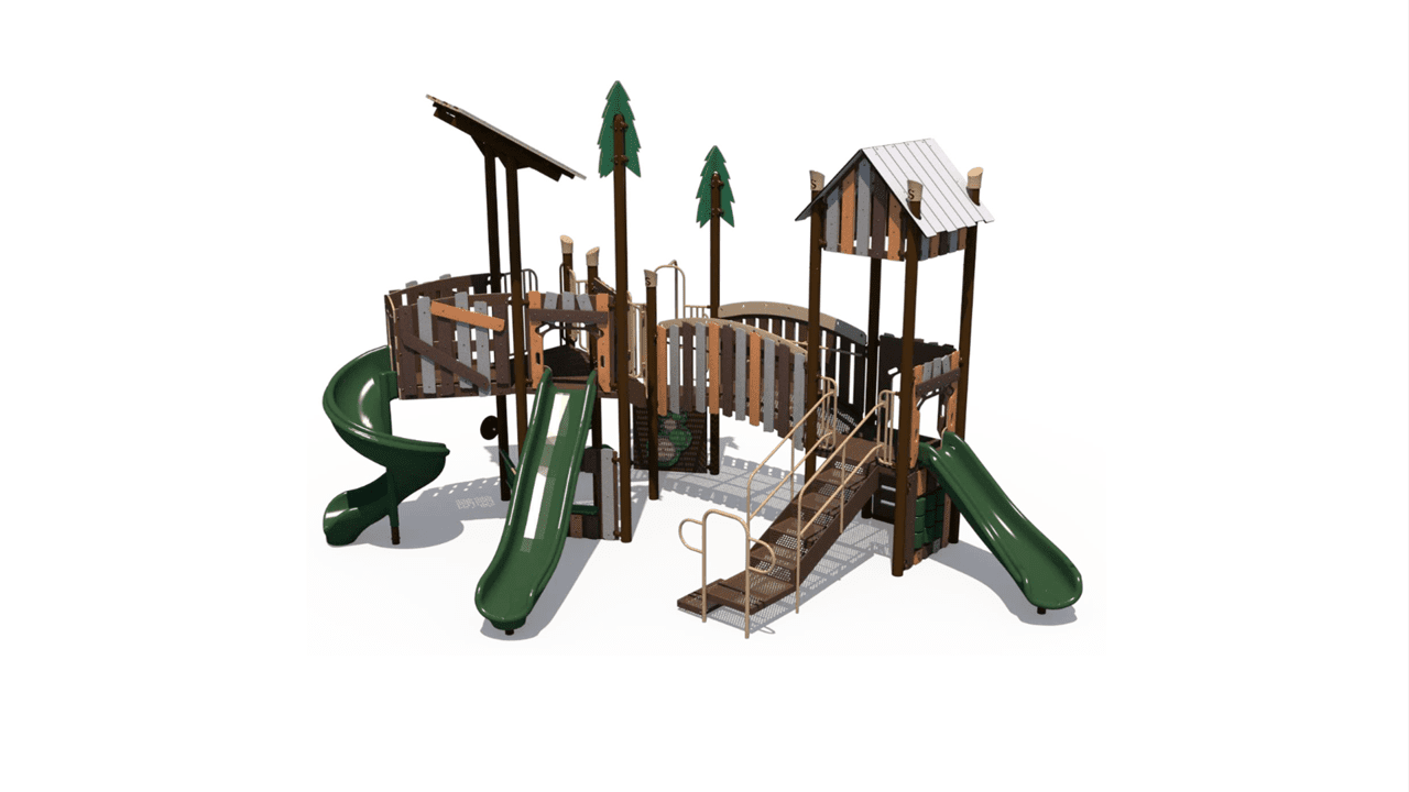 Kids will appreciate this wilderness themed playground featuring a spiral slide, two straight slides, and much more!